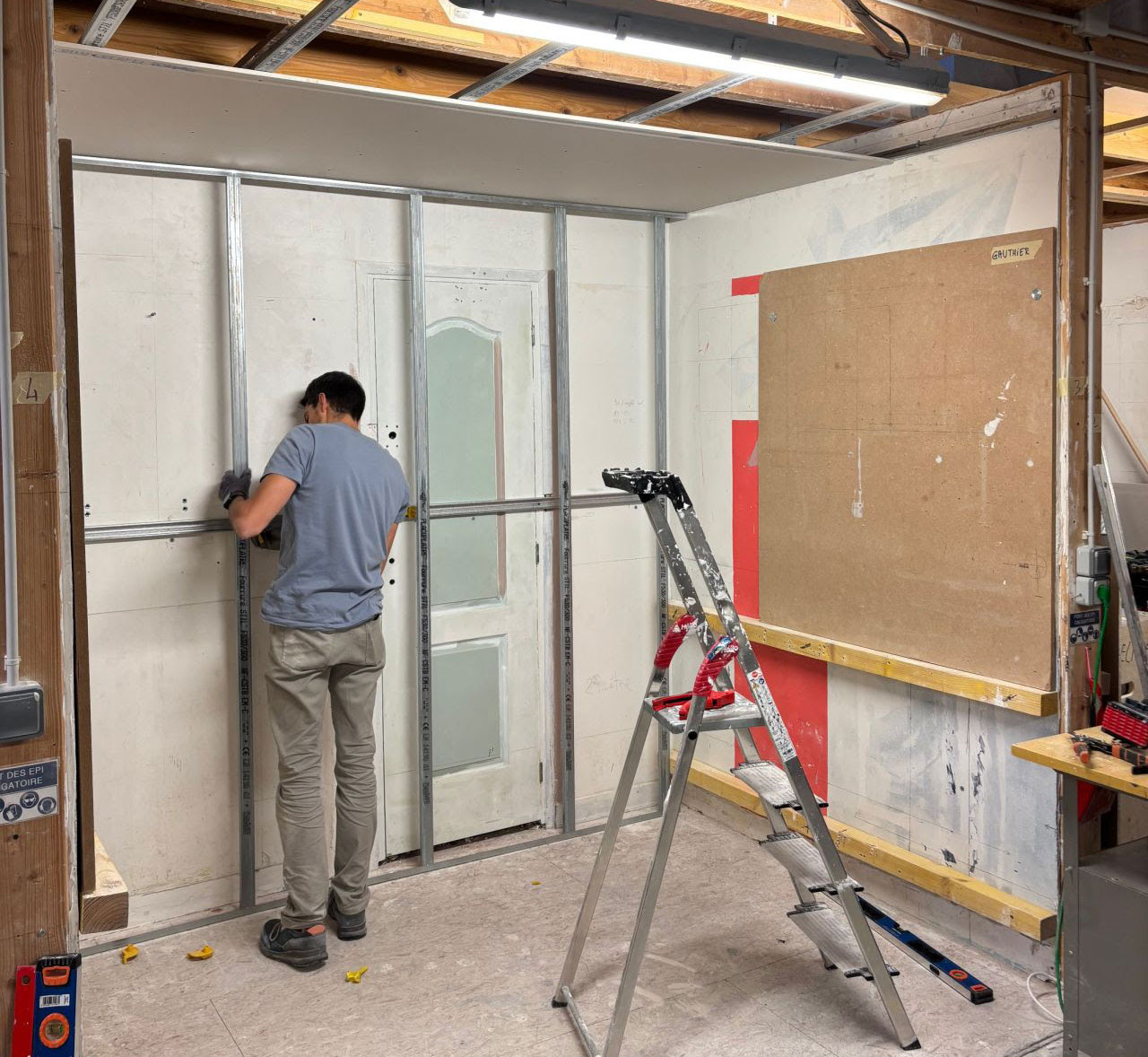 - Pose de cloisons en plaques de plâtre